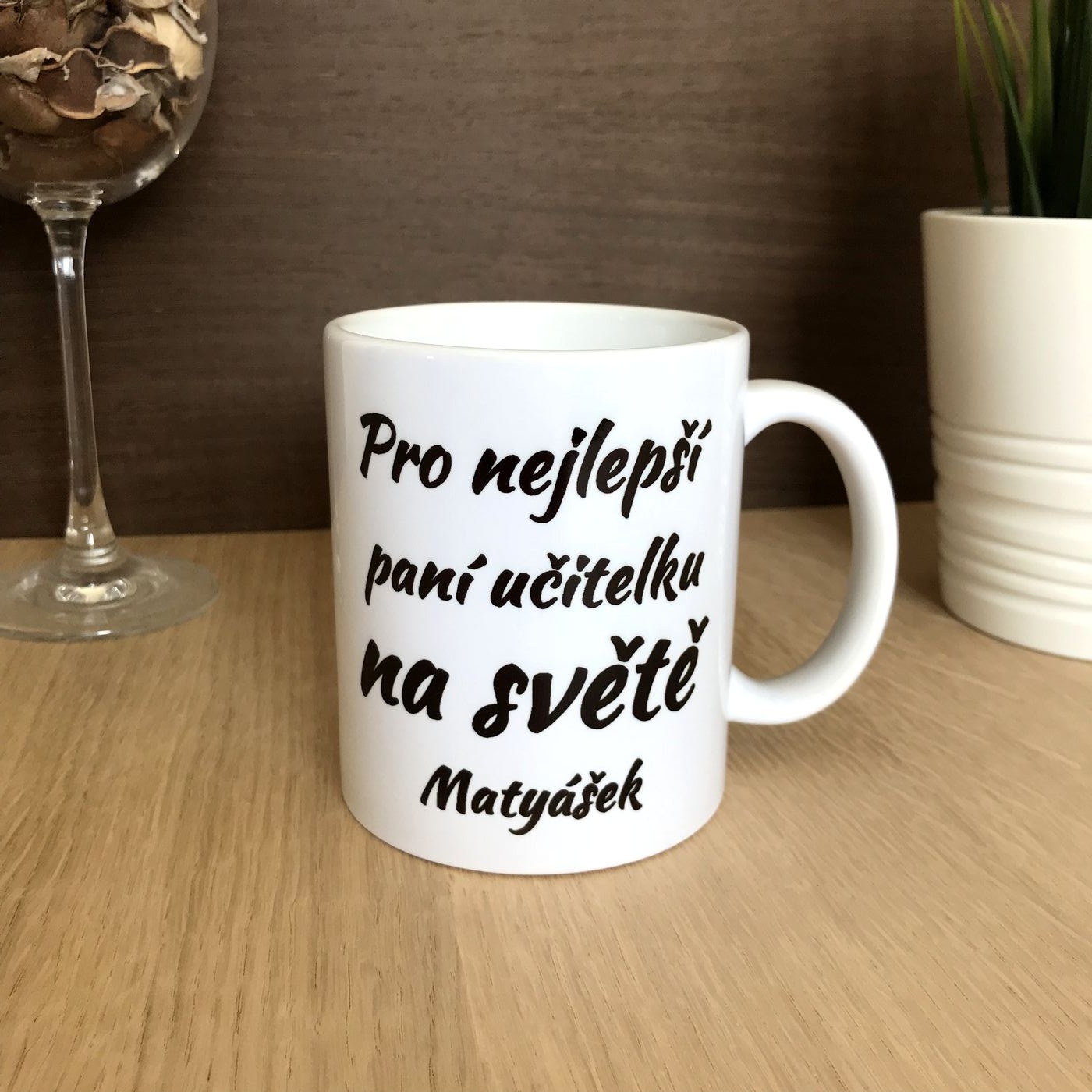 Hrneček o objemu 330ml. Na hrneček vyrobíme jméno podle Vašeho přání. Doporučujeme raději mýt v ruce. :-)